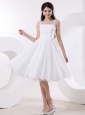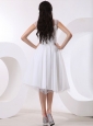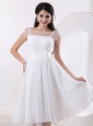 Dare to dazzle at your party in this simple style! The lovely knee-length dress features a scoop neckline and spaghetti straps hidden under the scoop neck fabric. The ruched waist band is decorated with a hand made flower, creating a wonderful view to this dress. The chiffon skirt is flowy and will move freely when you walk. Zipper up back is fabulous on this dress to makes for easy fit and on. A simple, lovely, yet graceful dress for you!
