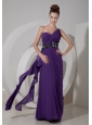 Sweet Purple Column One Shoulder Prom Dress Chiffon Beading Floor-length