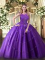 Sweet Purple Tulle Zipper Sweet 16 Dress Sleeveless Floor Length Beading and Appliques