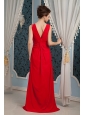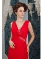 Home >  Prom Dresses >  Elegant Prom Dresses > Sweet Red Column Prom Dress V-neck Beading Brush Train Chiffon