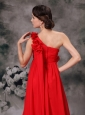 Sweet Red Empire One Shoulder Court Train Chiffon Prom / Evening Dress