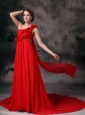 Home >  Prom Dresses >  Cheap Prom Dresses > Sweet Red Empire One Shoulder Court Train Chiffon Prom / Evening Dress