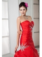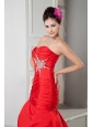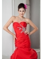 Sweet Red Mermaid Prom Dress Sweetheart Beading Floor-length Taffeta