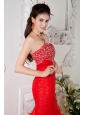 Sweet Red Mermaid Prom / Evening Dress Sweetheart  Beading Floor-length Organza