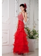 If there is a kind of fabric that every girl want to wear, then it must be organza. Light ,dreamful and comfortable organza is always the favorites of the designers to make dresses. Thus, this gorgeous red prom dress will conquer countlesshearts of women. Strapless  design with sweetheart neckline is highlighted by the heavily beaded close fitting bodice encrusted with delicate pleats. Layers of organza in the skirt make you feel you are fairy  dancing in the flowering shrubs. You will be stunning in the dance floor.