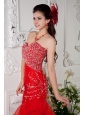Sweet Red Mermaid Prom / Evening Dress Sweetheart Beading Floor-length Organza