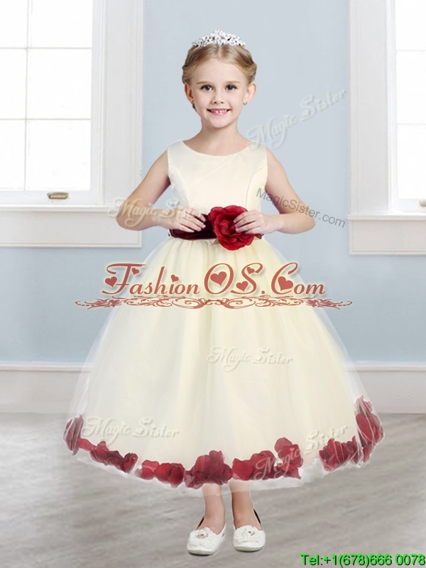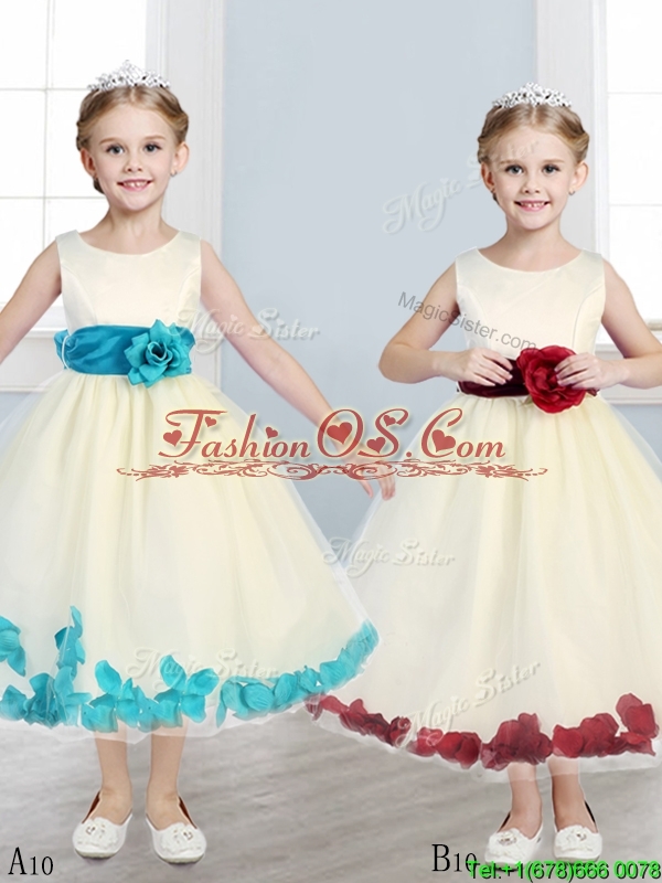 Home >  Special Occasion Dresses >  New Style Little Girl Pageant Dresses > Sweet Scoop Little Girl Pageant Dress with Hand Made Flowers and Appliques