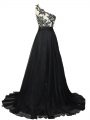 Sweet Side Zipper Juniors Evening Dress Black for Prom and Party with Beading and Lace Brush Train