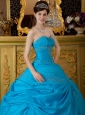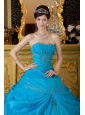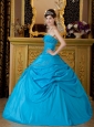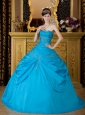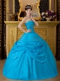 Sweet Sky Blue Quinceanera Dress Strapless Appliques Taffeta Ball Gown