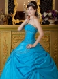 Sweet Sky Blue Quinceanera Dress Strapless Appliques Taffeta  Ball Gown