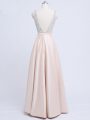 Sweet Sleeveless Floor Length Beading and Belt Backless Evening Dress with Champagne