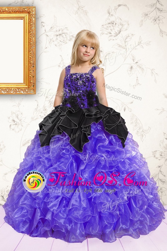 Sweet Sleeveless Lace Up Floor Length Beading and Ruffles Little Girls Pageant Dress