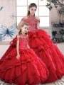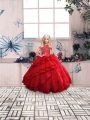 Sweet Sleeveless Organza Floor Length Lace Up Quinceanera Dresses in Red with Beading and Ruffles