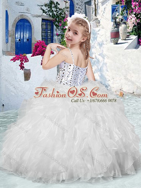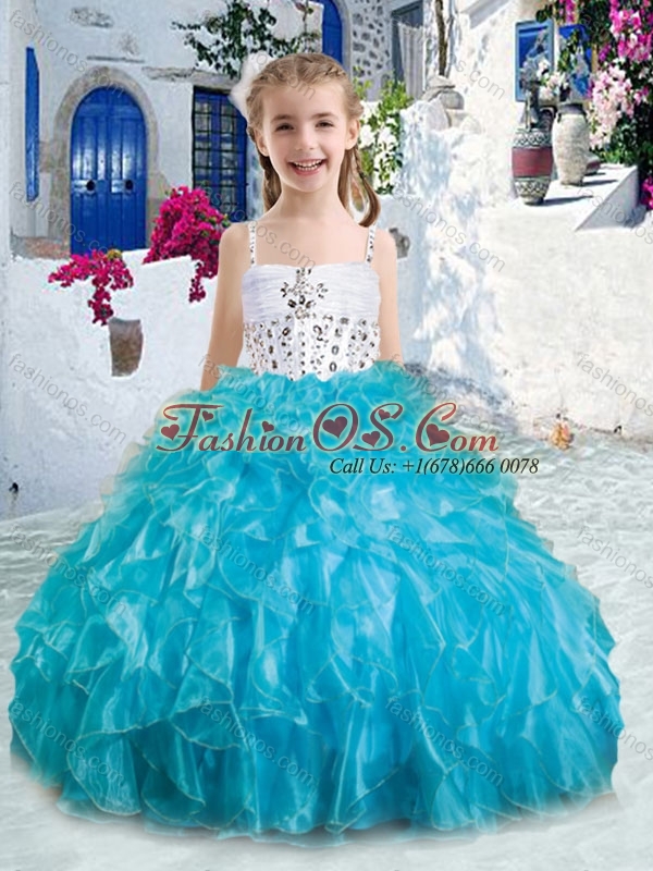 Sweet Spaghetti Straps Little Girl Pageant Dresses with Beading and Ruffles