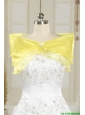 Sweet Strapless Yellow 2015 Detachable Prom Dress with Bowknot and Rolling Flowers