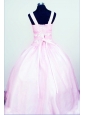 Sweet Straps Customize Baby Pink Taffeta Little Girl Pageant Dresses With Beading