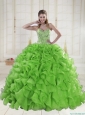 Sweet Sweetheart Spring Green Quinceanera Dresses with Brush Train