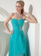 Sweet Turquoise High-low Sweetheart Prom Dress Chiffon Beading