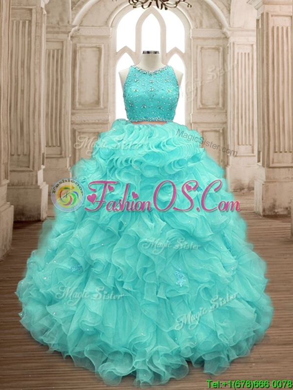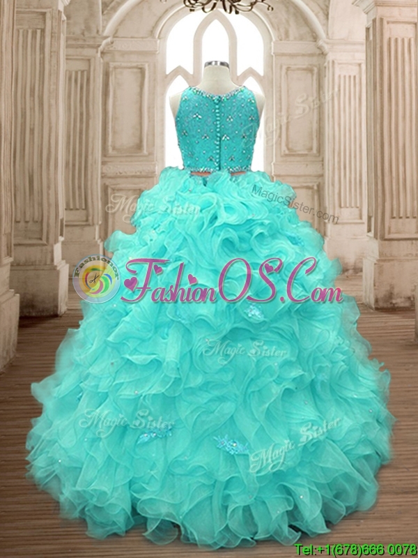 Sweet Two Piece Scoop Mint Quinceanera Dress with Beading and Ruffles