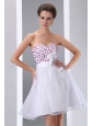 Sweet White A-line Sweetheart  Beading Short Prom Dress Mini-length Taffeta and Chiffon
