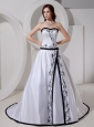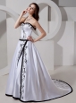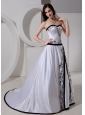 Sweetheart A-line Embroidery Taffeta Dropped Classical Custom Made Wedding Dress