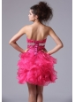 Sweetheart A-Line Mini-length Organza Beading Hot Pink Cocktail Dress