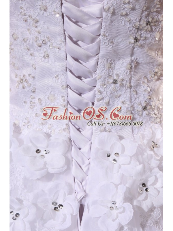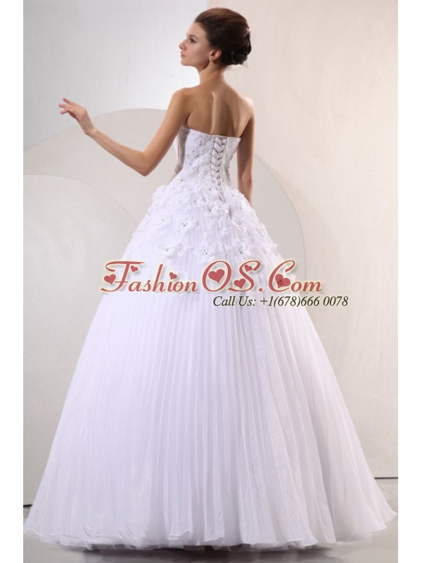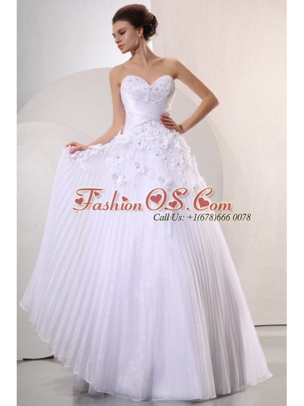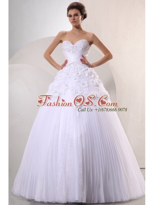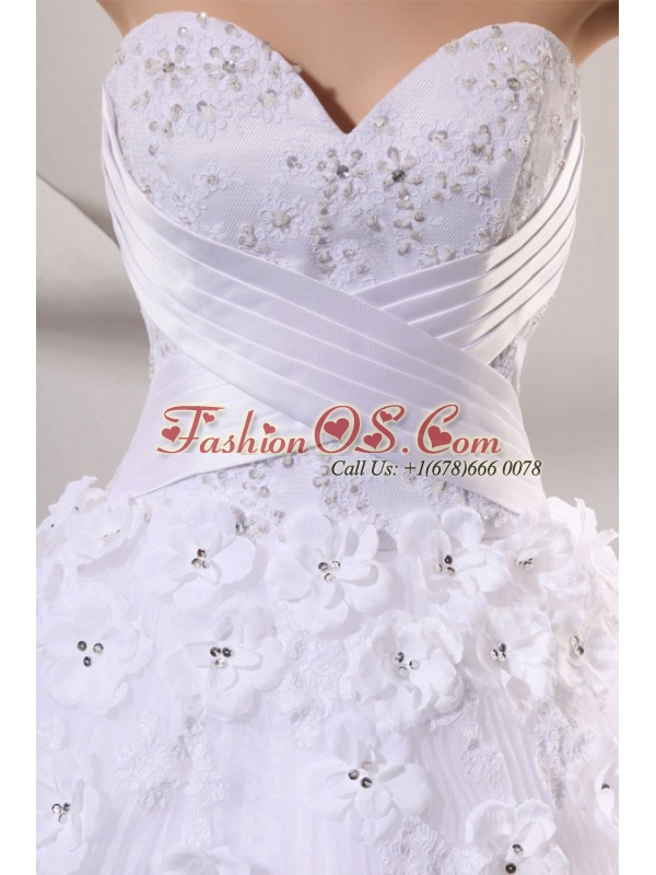 Sweetheart Ball Gown Hand Made Flowers and Pleats Wedding Dress