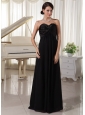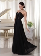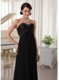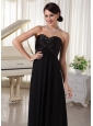 Sweetheart Beaded Black Satin and Chiffon Modest Dress For Formal Evening