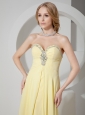 Sweetheart Beaded Decorate Yellow Prom Dress With Chiffon Floor-length