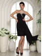 The combination of classical and modern! A strapless sweetheart neckline bodice with pleats throughout the whole dress to show your feminine or girly figure. The clear crystals scattered over the whole dress sparkle under the light. The tulle train on the side swaying when you walk ,achieve a fantastic look. A zipper up back finishes the look. An flirty sexy short prom dress fits for most of the social occasion.