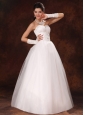 Simply designed dresses can also make a dramatic first impression, this white wedding dress is the perfect example. The elegant strapless sweetheart bodice features nice beadwork and exquisite appliques. The full A-line tulle skirt is pure with no redundant, and an adjustable lace up in the back completes this fabulous design. You are sure to be the most beautiful bride. What are you looking for? Just this one!