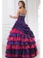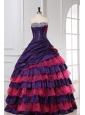 Sweetheart Beading and Flowers Quinceanera Dress in Red and Purple