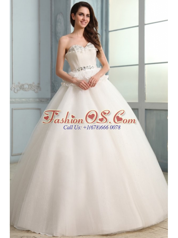 Sweetheart Beading and Pleats Floor-length Wedding Dress in Ball Gown