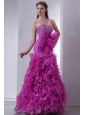 Sweetheart Beading and Rolling Flowers Mermaid Lilac Prom Dress