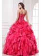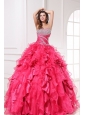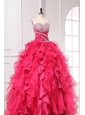 Sweetheart Beading and Ruffles Long Hot Pink Quinceanera Dress