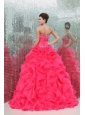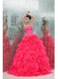 Sweetheart Beading and Ruffles Organza Coral Red Quinceanera Dress