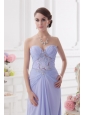 Sweetheart Brush Train Lavender Prom Dress with Ruching and Beading