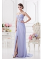 Home >  Prom Dresses >  Beautiful Prom Dresses > Sweetheart Brush Train Lavender Prom Dress with Ruching and Beading