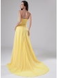 Sweetheart Chiffon Beading Brush / Sweep Prom Dress Empire Yellow
