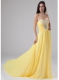 Home >  Prom Dresses >  Best Prom Dresses > Sweetheart Chiffon Beading Brush / Sweep Prom Dress Empire Yellow