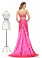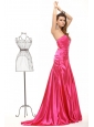 Sweetheart Column Appliques with Beading Prom Dress in Hot Pink