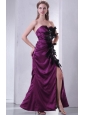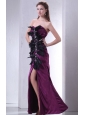 Sweetheart Column Beading and Feather Prom Dress in Dark Purple