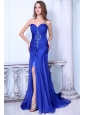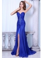 Sweetheart Column Beading and High Silt Chiffon Blue Prom Dress
