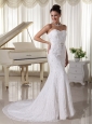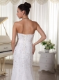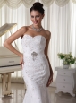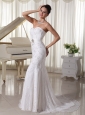 Sweetheart Court Train Sheath Wedding Gowns With Beading Over Bodice Lace and Elastic Woven Satin
