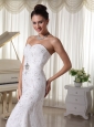 Feel special on your special day in this elegant bridal wedding dress. The allover lace creates you to be a charming goddess. A clear waistband decorated with beads emphasizes your figure perfectly. The mermaid trumpet with a court train will be sure to give you the most memorable wedding. The lace up back allows you to easy off and on. Wanna be special on your big day? Just take this chance!