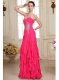Home >  Prom Dresses >  Fashionable Prom Dresses > Sweetheart Floor-length Beaded Decorate Hot Pink Prom Dress in Chiffon