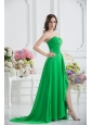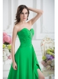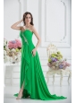 Home >  Prom Dresses >  Elegant Prom Dresses > Sweetheart High Slit Beading Spring Green Prom Dress with Ruching