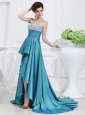Home >  Prom Dresses >  Fashionable Prom Dresses > Sweetheart High-low Beading and Applique Taffeta Teal Prom Dress