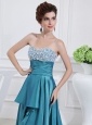 Sweetheart  High-low Beading and Applique Taffeta Teal Prom Dress