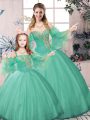 Sweetheart Long Sleeves Lace Up Sweet 16 Quinceanera Dress Green Tulle